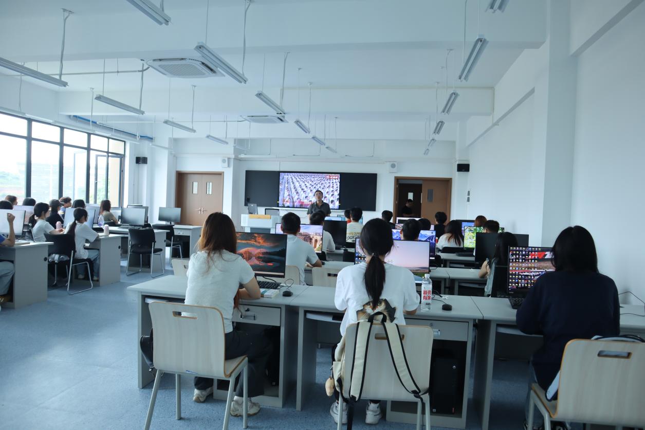 仪式观看前,袁丁院长通过线上线下结合的方式向全院师生发出动员。他在动员讲话中提到,阅兵仪式不仅是国家实力的直观展现,更是精神力量的集中传递,作为智能科技领域的教育者与学习者,既要在技术学习中追求创新突破,更要在时代浪潮中锚定家国担当。“希望大家在观看过程中,既要感受国防力量的硬核实力,也要思考如何将个人专业成长与国家科技发展同频共振,用智能科技的‘硬本领’为祖国建设添砖加瓦。” 袁丁院长的动员话语既饱含对祖国的深情,为师生明确了 “观阅兵、悟使命” 的学习方向。
