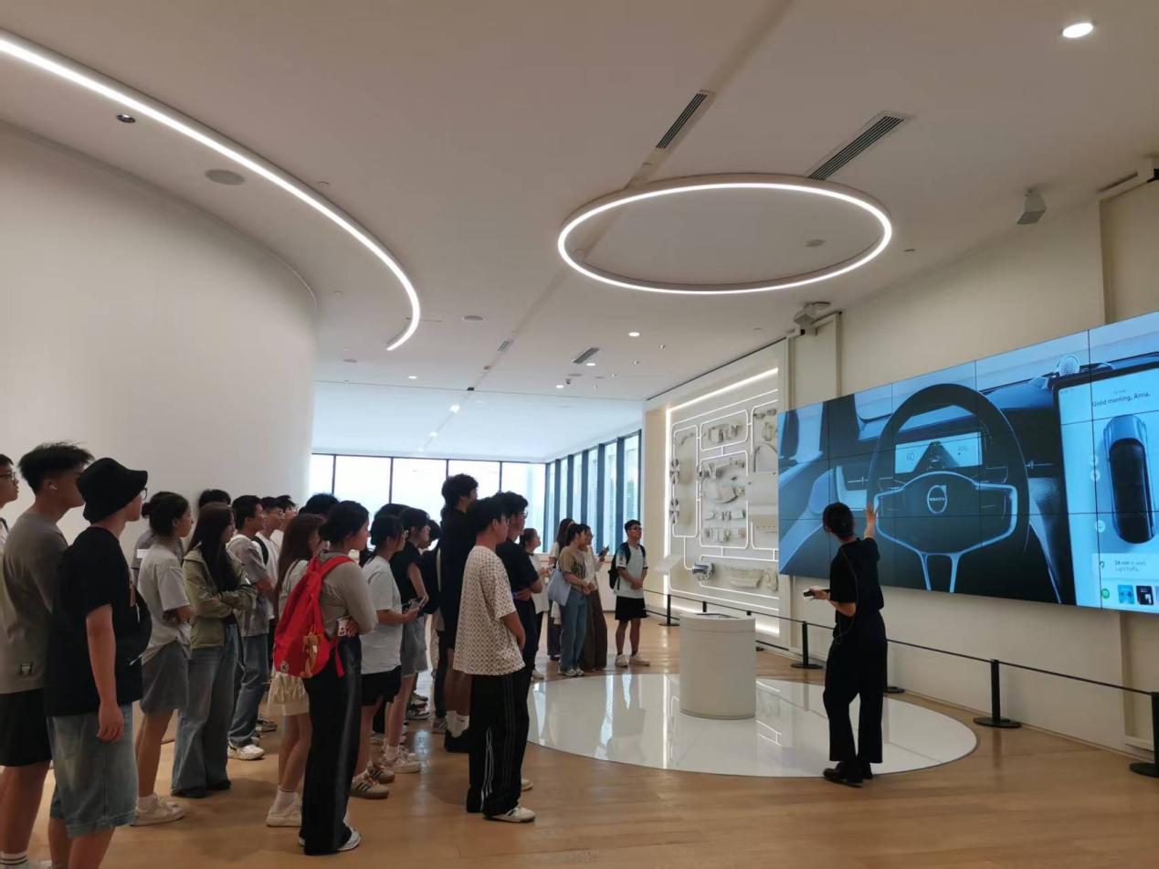 作为吉利控股集团旗下高端制造标杆基地,沃尔沃成都工厂以智能化生产与严苛安全标准享誉行业。在品牌体验中心,工厂研学负责人张经理首先通过百年汽车历史展陈开启讲解:从古董车底盘结构到新一代电动车型架,从发动机拆解模型到安全座椅迭代样品,新生们直观了解汽车工业从机械时代到智能电动时代的技术演进。互动体验区里,大家通过低速碰撞模拟装置感受车身安全防护原理,观看环幕影片中沃尔沃的安全测试历程,对 “安全即核心价值” 的品牌理念有了深刻认知。