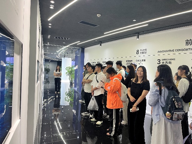 活动伊始,拱鼎科技负责人带领师生参观了企业展厅,详细介绍了公司发展历程、核心技术成果及国产工业软件生态布局。作为吉利控股集团旗下的高新技术企业,拱鼎科技以CAE工具链研发为核心,打造了覆盖虚拟仿真、数字化孪生、智能网联等领域的全链条技术体系。