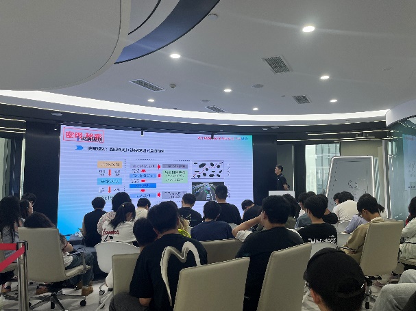 参观结束后,拱鼎科技四位行业专家为师生带来专题技术讲座:软件研发总监王玉以“虚拟仿真技术驱动汽车研发变革”为题,结合20余款车型的联合仿真案例,解析场景建模的核心算法与行业趋势;高级汽车工程师黎德祥通过车辆动力学实验数据与智能辅助驾驶系统开发实例,阐释“仿真-测试-优化”的闭环逻辑;高级三维美术设计师汤伟系统讲解虚拟场景建模的全流程技术,涵盖3D建模、材质渲染、UE引擎部署等关键环节;产品经理万波展示了国产工业软件在车辆结构强度与NVH性能仿真中的创新应用,强调“技术自主化”对产业升级的意义。